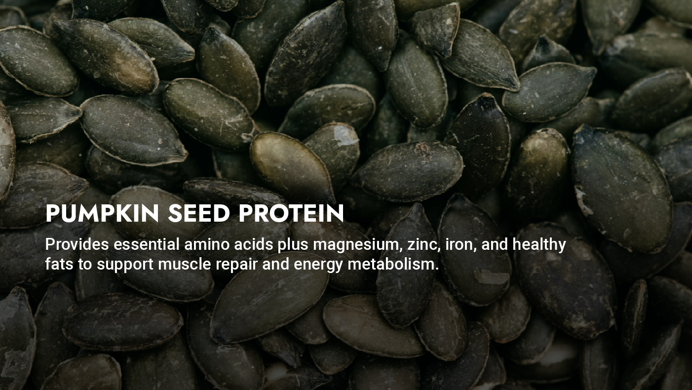 Pumpkin seed protein adds arginine, magnesium, and essential amino acids that complement pea and fava proteins. This helps support blood flow, energy metabolism, and recovery, especially for athletes engaged in high-intensity or endurance training.